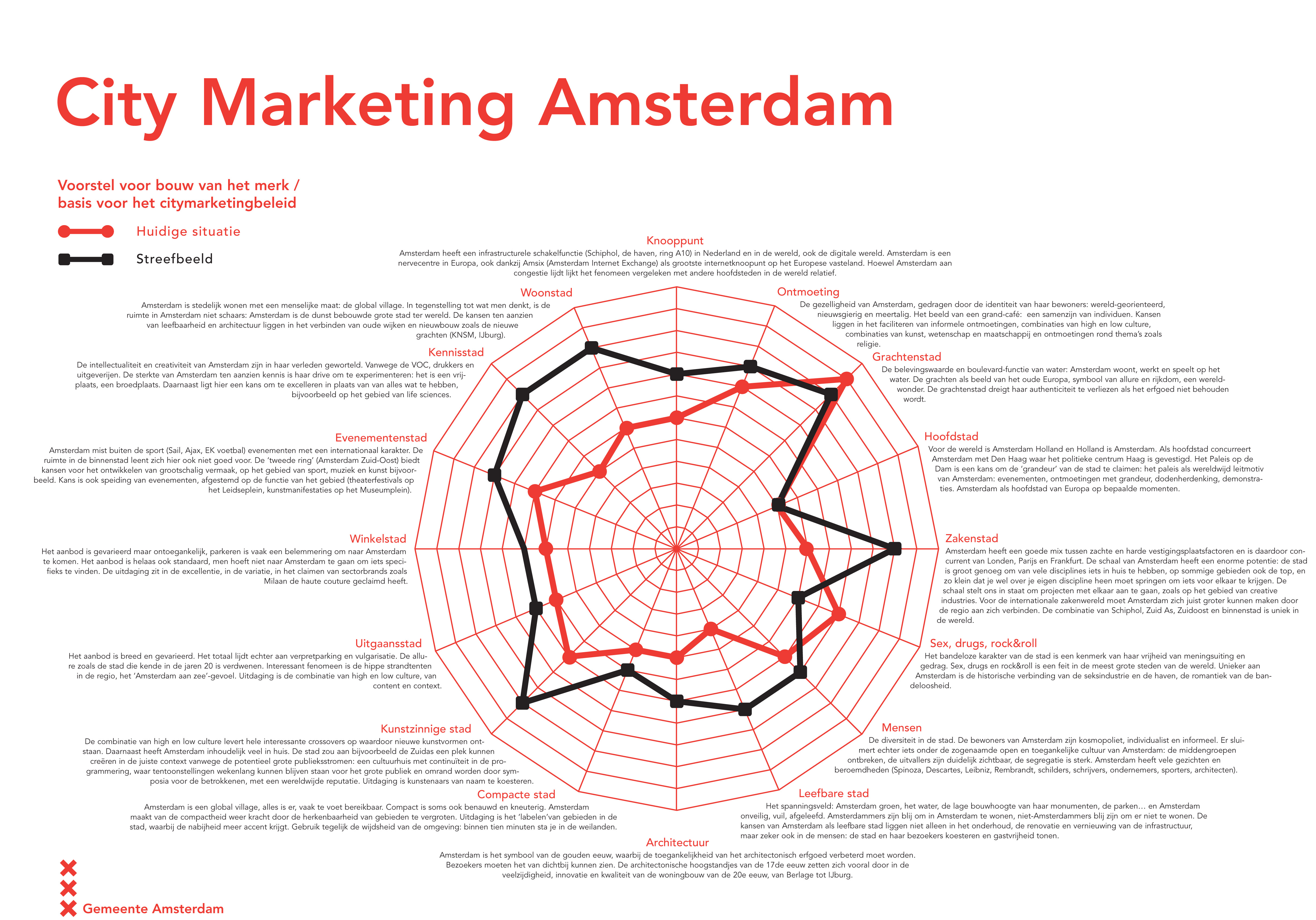 Amsterdam Heeft ‘t, in all its cute beauty, was a seed that contained all the characteristics of the present citybranding practice. Firstly, government makes way for governance by a coalition of public and private actors, resulting in not-so-public decision making processes. Secondly the branding campaign had a dual purpose: The official objective is naturally the attraction of tourism and inward investment, but it serves just as important a purpose in reprogramming the behavior of its citizens, and neutralizing dissenting visions.